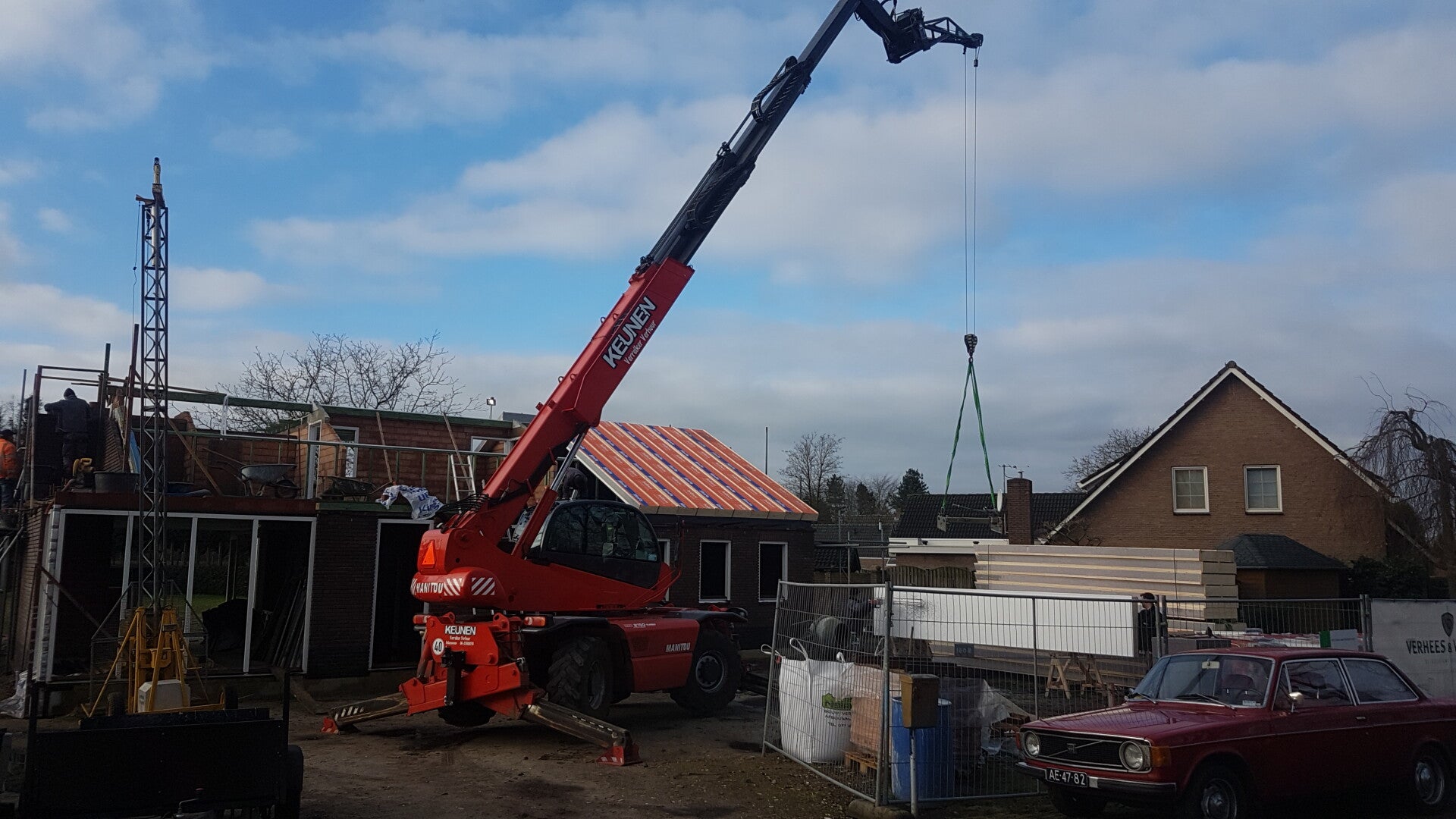 Dakplaten leggen met de jiblier en hydraulische klem